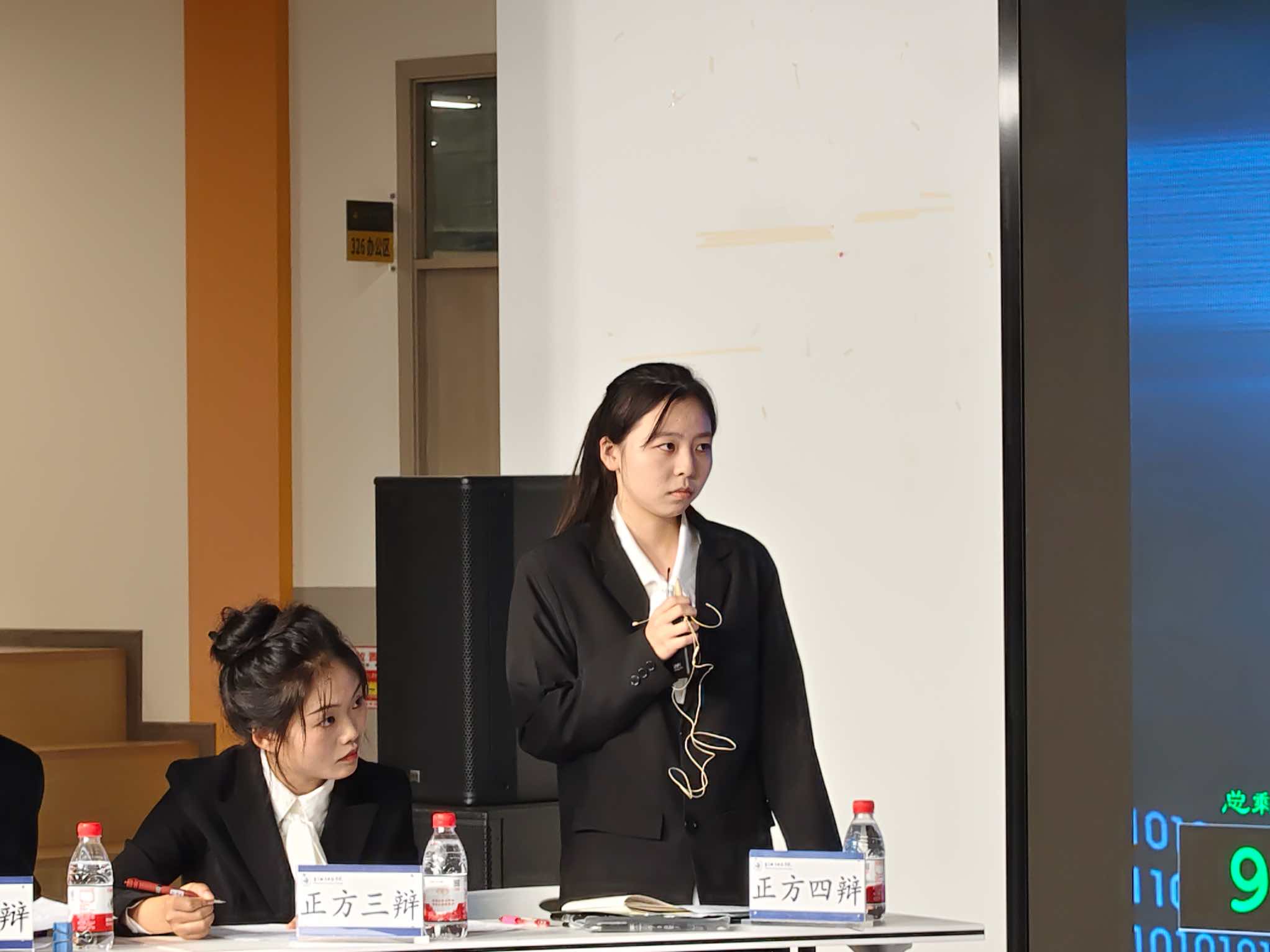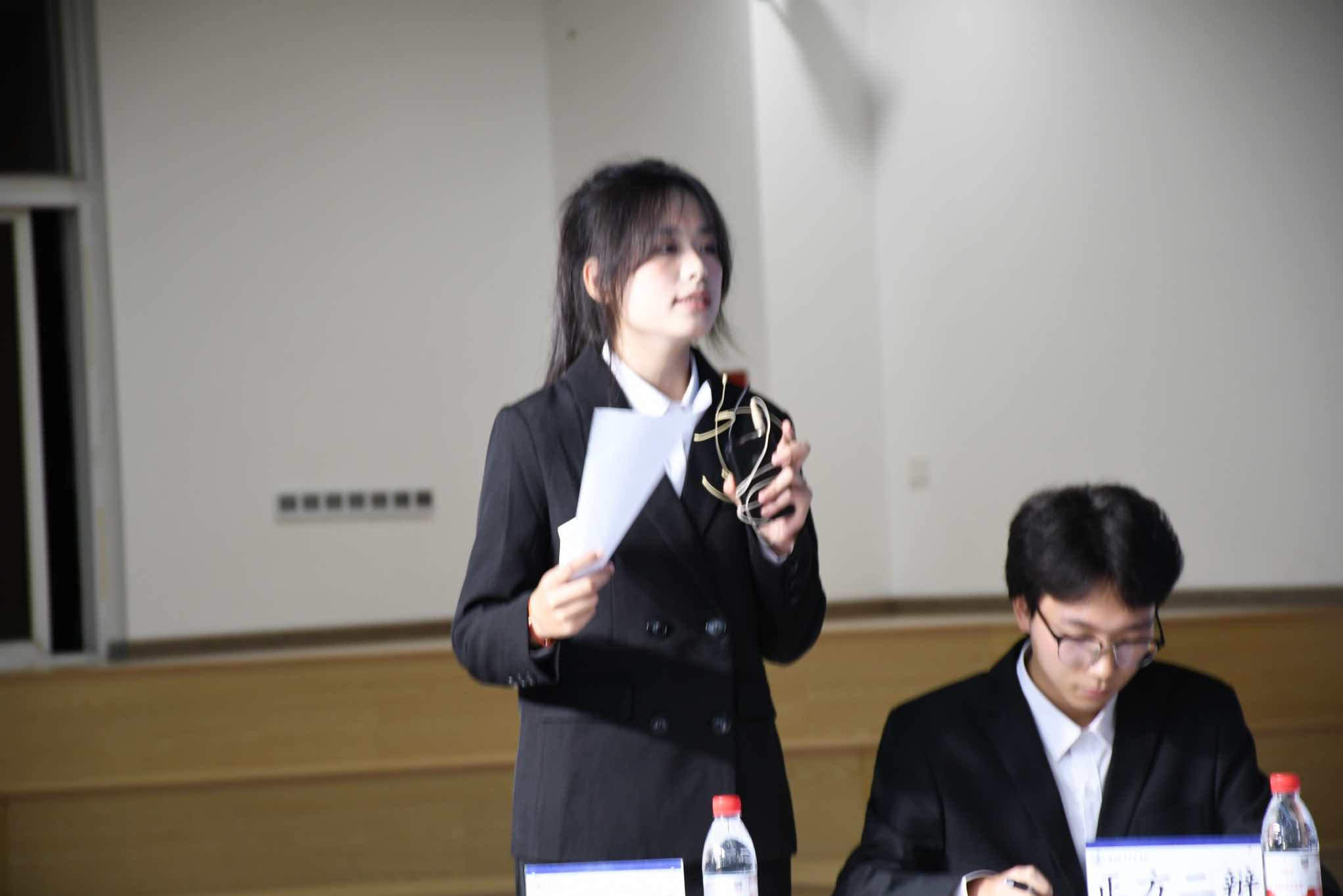 校辩论队队长王秭涵为两位"最佳辩手"颁发荣誉证书