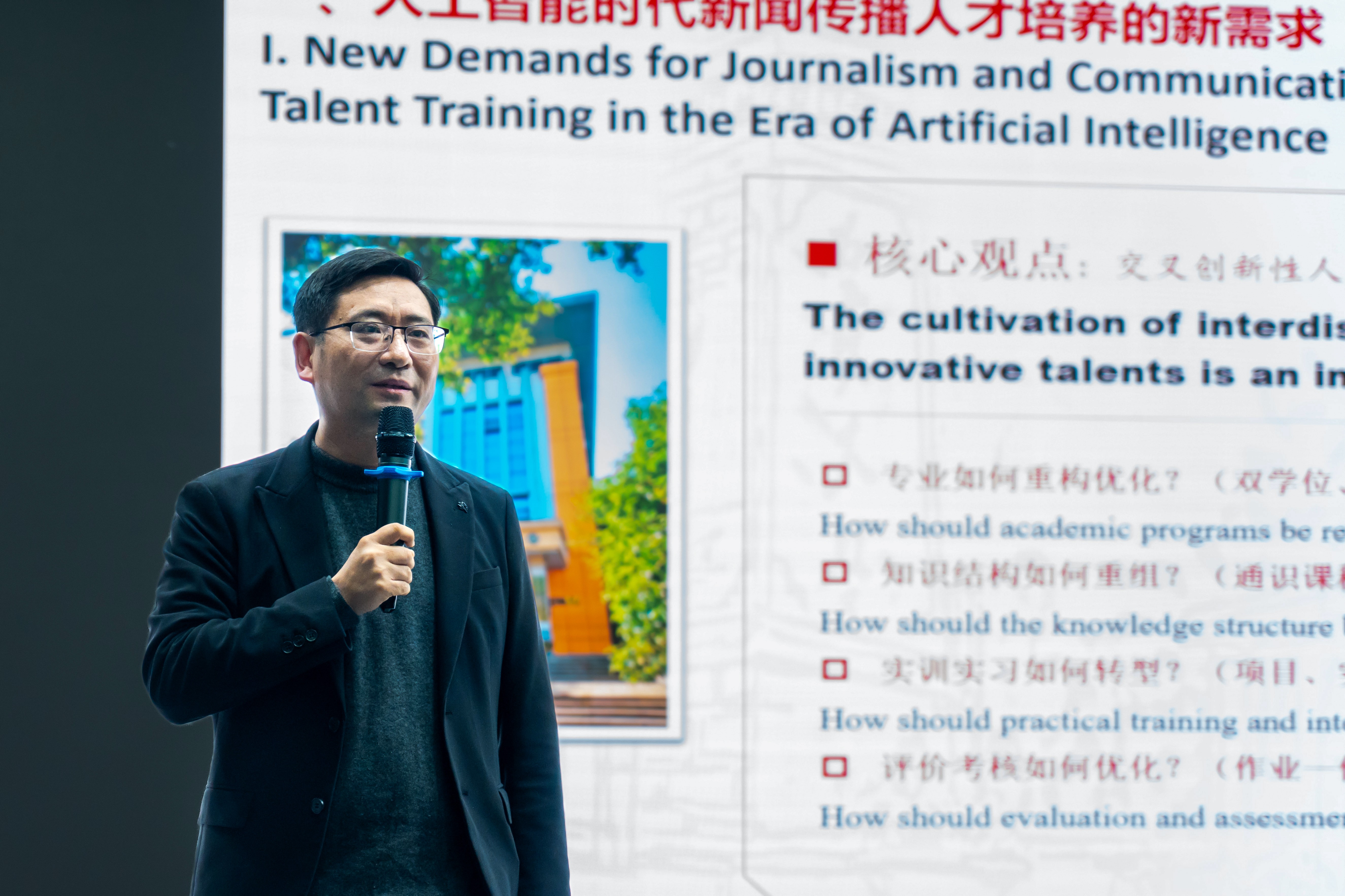 12月10日,sjb世俱杯官方网站巴南校区4K演播录制中心高朋满座,思想激荡,由重庆市电视艺术家协会与sjb世俱杯官方网站主办、艺术与传媒学院承办的第二届“基于AIGC的设计与传媒教育发展论坛”暨艺术与传媒学院·人工智能与大数据学院院际协作签约仪式在此成功举行。论坛以“新质设计·数智传媒”为主题,作为重庆市社科界第九届学术活动年项目,汇聚了来自重庆广电集团、重庆大学、西南政法大学、四川美术学院等高校与行业的六位顶尖专家,共同探讨人工智能与艺术传媒教育融合之下的育人变革及创新实践路径。 直面变革:AIGC时代下传媒行业的定力与创新 论坛上半场,重庆广播电视集团(总台)党委委员、副总编辑余季波以《媒体人的使命与未来之路》为题,拉开了学术分享的序幕。他结合行业前沿动态,深刻剖析了在传播逻辑重构的时代背景下,媒体人必须坚守“内容为王”的初心,同时积极融入技术浪潮,构建体系化思维与商业逻辑,在变局中开拓新局,重思自身的核心价值与使命担当。 育见未来:新闻传播教育如何应答智能时代 重庆大学新闻学院党委委员、院长郭小安教授在《人工智能时代新闻传播教育的挑战与回应》中,为学科人才培养模式的转型提供了系统性思路。他创造性提出“增量改革,大平台建设”理念,并详细阐释了构建大实验教学平台、大文科科研平台、大产学研转化基地的三大构想。面对智能传播时代新闻传播人才培养的挑战与风险,郭小安教授以一系列深刻的“变与不变”为新闻传播教育的转型定下基调。即教育的模式可以变,方向不能变;教育的内容可以变,责任与使命不能变;学科的研究方法可以变,人文属性不能变;学生的学习工具可以变,深度阅读能力不能变;学生的学习方式可以变,合作能力、批判意识、创新意识、逆向思维、国际视野、家国情怀等核心素质的培养目标不能变。 课堂革命:一次与AI合作的生动备课实验 西南政法大学谷李教授将宏观理念落地于生动的教学微观层面,他以一堂“生成式电影课”为叙事核心,分享了利用DeepSeek为经典影片《花样年华》创作续集《花样年华:之后》的实验过程,并以此揭示了AIGC的复杂面向。谷李教授指出,AI能够“聆听”关于原作的社会对话,有效吸收其意涵并体现于新的表达,且续作与原作具有高度连贯性,令人惊喜。然而,虽然AI可以高效完成符合“目标”的文本,但存在“是否真的‘关心’其生成的内容”的缺失。他认为,实验给出了应在教学中发挥AIGC生产性的启示,人机共生时代,需认识到教育的核心使命正从“知识传授”转向“人性淬炼”,教师必须引导学生锚定创作的目的与意义,培养价值判断力、情感共鸣力以及拥抱不确定性的勇气,因为“人,依然是意义的宇宙”。 教学重构:艺术设计教育的“变”与“不变” 重庆大学产业技术研究院AIGC讲师吴长川则以《AI时代艺术设计的变与不变》为题,为艺术设计教学改革提供了清晰路径。他指出,设计师的角色正在发生根本性转变,这意味着教育需要引导学生将AI视为协同创作的合作者,而非纯粹的工具操作者。面对“企业要什么,学生学什么,老师教什么”这一传统链条的失效,吴长川提出全新的教学逻辑:教师应主动发现企业可能遇到的真实问题,引导师生共同探索解决方案,以此驱动教学。吴老师强调,教学的目标应从完成“作品”转向创造“产品”,注重“轻量化商业实践”。为落实这一理念,他分享了一套从“器、术、法、道”四个层面入手的系统方法,并指出变化的“器与术”是为了拥有更广阔的表达,而不变的“法和道”则指向更深邃的审美。 模式创新:川美跨学科人才培养的实践与思考 论坛下半场,四川美术学院影视动画学院副院长王茜濡教授以《动漫产业学院人才培养模式的川美实践》为题,分享了艺术院校在跨学科融合与创新型人才培养方面的宝贵经验。她系统阐述了以“道、学、术、用”为核心的育人理念,以及通过“艺科融合、项目驱动、沉浸创作、服务转化”四位一体的新模式,旨在培养兼具文化传承力、科技创新力与产业应用力的高素质艺术人才,最终实现 “艺术教育与现代产业的同频共振”,彰显艺术院校服务国家与社会的使命担当。 技术赋能:高保真数字人如何拓宽创作边界 重庆大学计算机学院教授、博士生导师秦红星从技术前沿出发,在《基于3DGS的数字人重建》报告中,揭开了高保真数字人的技术内核。他指出虚拟数字人的核心价值在于提供高效、低成本、高度定制化的“真人出镜”解决方案,可应用于视频、直播、数字员工等广泛场景。秦红星教授系统梳理了数字人技术的两大分支:人体数字人技术专注于姿态控制与物理交互,涉及动作驱动、环境感知、全身协调以及复杂的布料物理模拟;人头数字人技术则致力于实现高保真交互与情感传递,追求面部微表情的肌理细节与情感计算的逼真模拟。他阐明,数字人技术的底层核心为数字生成任务:即给定人体骨架参数与表情参数,生成对应的人物身体及脸部图像。秦教授的报告将深奥的计算机图形学原理与鲜活的创作需求相结合,生动展示了以3DGS为代表的前沿技术如何为艺术设计、传媒内容创作提供强大应用支持,从技术底层拓宽了艺术表达的边界。 签约协作:艺术与技术的跨学科融合迈出实质步伐 主题发言结束后,论坛迎来了一