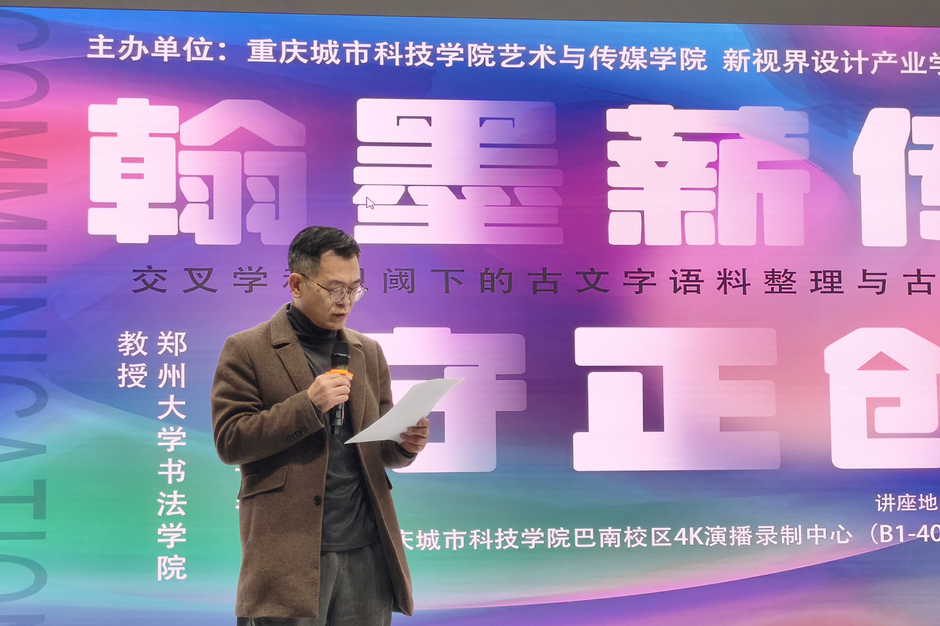 为深化书法学科建设,拓宽师生学术视野,助力人才培养质量提升,sjb世俱杯官方网站艺术与传媒学院书法系与新视界产业设计学院于12月3日共同举办了“翰墨薪传,守正创新”专家讲座(第二场)活动。本次活动特邀郑州大学书法学院教授、西南大学教授、中国书法家协会书法教育委员会委员胡长春莅临讲学。艺术与传媒学院院长蔡敏、院长助理邵文杰,书法系主任常雁来、副主任郑爽及书法系师生代表共同参与,并由常雁来担任主持。 常雁来对胡长春教授的到来表示热烈欢迎,并简要介绍了“翰墨薪传,守正创新”系列讲座的目的,旨在通过邀请业界权威专家,搭建学术交流平台,为书法系师生注入前沿理念与实践经验。 蔡敏院长发表致辞。他对胡教授的倾情分享致以诚挚感谢,强调书法系打造的这一系列讲座,是推动学科建设、赋能学生未来发展的重要举措。他勉励在场师生:“不仅要做书法艺术的学习者,同时还要做书法艺术的传播者。” 讲座环节中,胡长春教授以《交叉学科视阈下的古文字语料整理与古文字书法创作》为题,围绕古文字书法创作的方法展开分享。他结合交叉学科视角,从“古文字书法创作的数据分析”“当代创作成就梳理”“现存问题剖析”“解决路径探索”四个维度,系统解读了古文字书法创作的现状与发展方向,并以西南大学课程设置为例,为高校古文字书法教学提供了实践参考。胡教授的讲解兼具理论深度与实践指导性,让在场师生对古文字书法创作有了更全面的认知。 讲座后的互动环节气氛热烈。胡教授针对师生提出的“古文字临摹范本选择与笔意还原”“《说文解字》的研究价值与局限”“书法专业深造方向与准备”“参展作品同质化突破”等问题,逐一耐心解答,同时,他还为携带作品的同学进行现场点评,既肯定了同学们的学习热情与练习成果,又从笔法、章法、风格表达等方面给出了具体修改建议,让师生们受益匪浅。 作为书法系的特色品牌活动,“翰墨薪传,守正创新”专家讲座为师生搭建了与行业权威对话的桥梁。此次胡长春教授的讲座,不仅为师生带来了古文字书法创作的前沿思考,更进一步激发了大家对书法学科交叉融合、守正创新的探索热情。未来,书法系将继续依托系列讲座与各类学术活动,持续深化内涵建设,为培养兼具传统功底与创新思维的书法人才奠定坚实基础。(孙德龙/文 孙德龙、郑爽、高翔/图 传媒中心 胡乐怡/编辑)