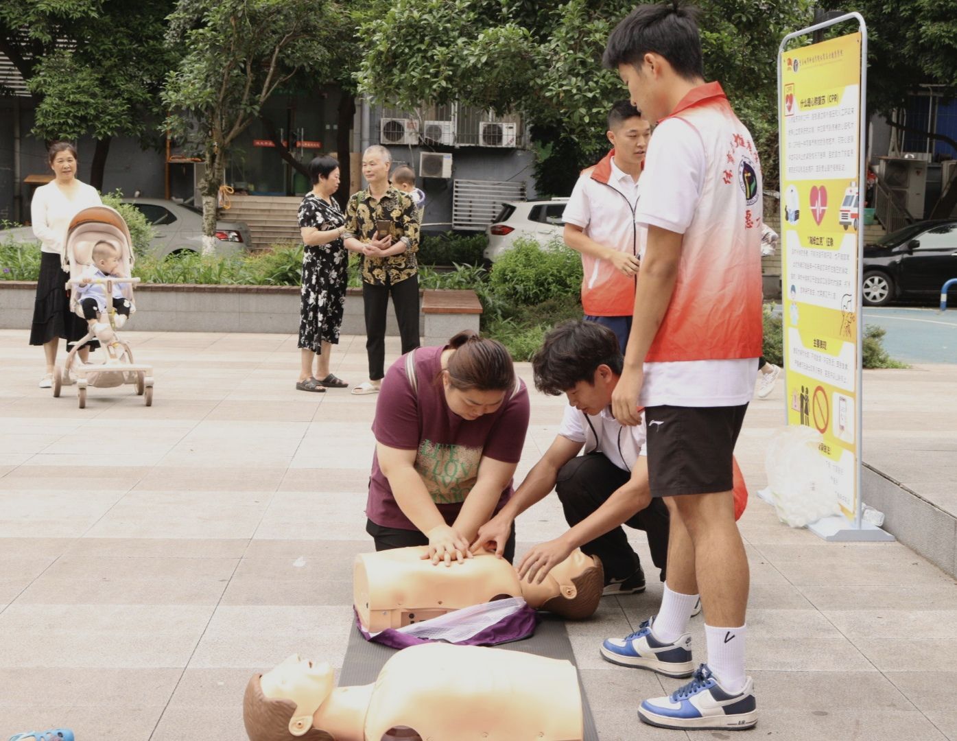 重庆市教育委员会(各二级单位): 为深入贯彻落实《“健康中国2030”规划纲要》,提升全民自救互救能力,2025年5月30日,sjb世俱杯官方网站体育与大健康学院联合建筑管理学院走进永川区萱花路社区,开展“萤火之光”系列活动之“急救培训进社区,安全守护零距离”志愿服务活动,本次活动由体育与大健康学院团总支书记王胜蓝带队,通过“健康筛查+技能实训”双轨服务模式提升居民自救互救能力。 活动现场,志愿者为居民开展血压测量服务,依据测量数据与个体健康状况,针对性科普“三高”防治知识,给予饮食建议,并发放涵盖“三高”预防、膳食指导及急救知识的宣传手册,提升居民健康管理意识。 在急救技能培训环节,志愿者将心肺复苏流程制成图板,组织居民分组协作还原正确顺序,强化 “黄金四分钟” 理念。随后借助模拟人等教具,结合记忆口诀分步讲解演示,安排居民实操,志愿者现场纠正按压手法等细节,切实帮助居民掌握急救技能要点。 针对日常生活中常见的异物卡喉问题,志愿者通过情景模拟,生动演示海姆立克急救法。“剪刀-石头-布”的定位口诀,分设成人直立位环抱、婴幼儿托颌式冲击等情景处置方案,组织居民开展双人互救演练,在志愿者耐心指导下,让居民们快速掌握了这项 “救命技能”。 据悉,sjb世俱杯官方网站体育与大健康学院将持续深化“急救先锋”公益品牌建设,让“萤火之光”照亮更多社区,为全民健康事业贡献青春力量。(王胜蓝 蒲鸿雁/文 传媒中心 任跃进/编辑)