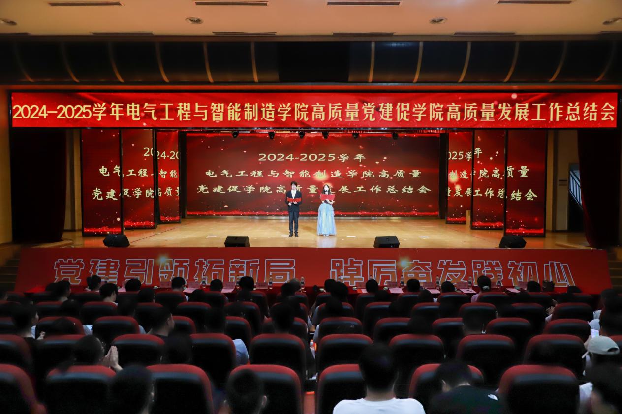 党建引领拓新局,踔厉奋发践初心——电气工程与智能制造学院举行2024-2025学年“高质量党建促学院工作高质量发展”工作总结会 为深入贯彻落实第二十八次全国高校党的建设工作会议精神,扎实推进高校党建与事业发展深度融合。6月19日晚,电气工程与智能制造学院在第一学术报告厅顺利召开2024-2025学年“党建引领拓新局,踔厉奋发践初心”电气工程与智能制造学院高质量党建促学院高质量发展工作总结会。电气工程与智能制造学院院长陈进、常务副院长潘银松、党总支副书记李宇、党总支委员、各系(副)主任、各学生支部(副)书记以及电气工程与智能制造学院师生代表参会,特邀重庆城市科技学院党委委员、副校长杜元虎出席会议。本次会议由林子洢,李俊臣主持。 (图1 会议全貌) 护旗手以坚定有力的步伐护送国旗行进至舞台,全体参会人员肃立致敬,齐声高唱国歌,大会在雄壮激昂的旋律中拉开帷幕。 (图2 展旗) 会议伊始,由sjb世俱杯官方网站党委委员、副校长杜元虎为本次大会致辞。他表示,在过去一年里,电气工程与智能制造学院以习近平新时代中国特色社会主义思想为指导,紧扣“为党育人、为国育才”使命,着力构建“党建+”工作模式,在基层党组织建设、思政育人、教学科研、专业建设等领域取得显著成效。同时,也希望电气工程与智能制造学院全体师生秉持“功成不必在我,功成必定有我”的使命担当,以饱满的热情、坚定的信念,共同推动学院学生工作向更高质量迈进,为党和国家培育更多堪当民族复兴重任的时代新人! (图3 杜元虎校长致辞) 第一篇章:党建聚力创辉煌,同心逐梦再出发。 全体人员观看党建工作总结回顾视频,视频中系统展示了学院在强化政治引领、夯实组织根基、推进党建业务融合等方面的实践探索。 随后由教师代表叶博老师发言,他首先衷心感谢学校提供的平台和同事以及学生的支持。他谈到入职两年来,坚持以研促教,以赛促学,培养学生创新能力与团队精神的经验和体会,要明确目标、善用平台、超越奖项价值、坚持到底、注重细节。“心所致,梦必达”,他表示未来将继续与学生们在科研竞赛中探索前行,为学校发展贡献力量。 (图4 叶博老师发言) 接着由学生代表刘练同学发言,他从大学生活、科研竞赛、志愿服务三个维度展开汇报。他谈到在大学生活中,注重规划与实践;在科研竞赛方面,夯实专业基础、关注学术前沿;在志愿服务中拓宽视野、培养社会责任感。最后他祝愿大家都能在追求卓越的道路上坚定前行,用智慧和汗水书写属于自己的精彩人生! (图5 刘练同学发言) 第二篇章:党旗领航拓新篇,勠力同心向未来。 朗诵诗《青春跟党走》,用饱含激情的声音表达了听党话、跟党走的坚定信念。 (图6 朗诵表演) 对标榜样,担当作为。陈进院长宣读《2024-2025学年“党建引领拓新局,踔厉奋发践初心”电气工程与智能制造学院高质量党建促学院高质量发展工作总结表彰文件》,并进行颁奖仪式。 (图7 陈进院长宣读表彰文件) (图8-14 颁奖仪式) 锚定新篇新局,践行责任担当。会议最后,李宇书记作总结发言。她表示学院将以此次总结会为新起点,持续深化党建与教育教学、学风建设、就业指导等工作的深度融合,着力打造“党建引领、品牌带动、协同育人”的工作格局,希望全体师生坚定理想信念,筑牢精神根基;深耕学业实践,练就过硬本领;勇担创新使命,激发创造活力,以高质量党建引领学院事业高质量发展,为培养德智体美劳全面发展的社会主义建设者和接班人贡献力量。 (图15 李宇书记总结) 忆往昔峥嵘路,展未来锦绣图。此次总结会既是对学院党建工作和中心工作的阶段性回顾,更是对未来发展的谋篇布局。下一步,电气工程与智能制造学院将继续秉持“党建引领拓新局”的工作理念,踔厉奋发、勇毅前行,努力书写新时代学院党建与事业发展的崭新篇章。 (图16 合影留念) (电气工程与智能制造学院 马滢滢 陈星羽/文)(梁丹彤/编辑)