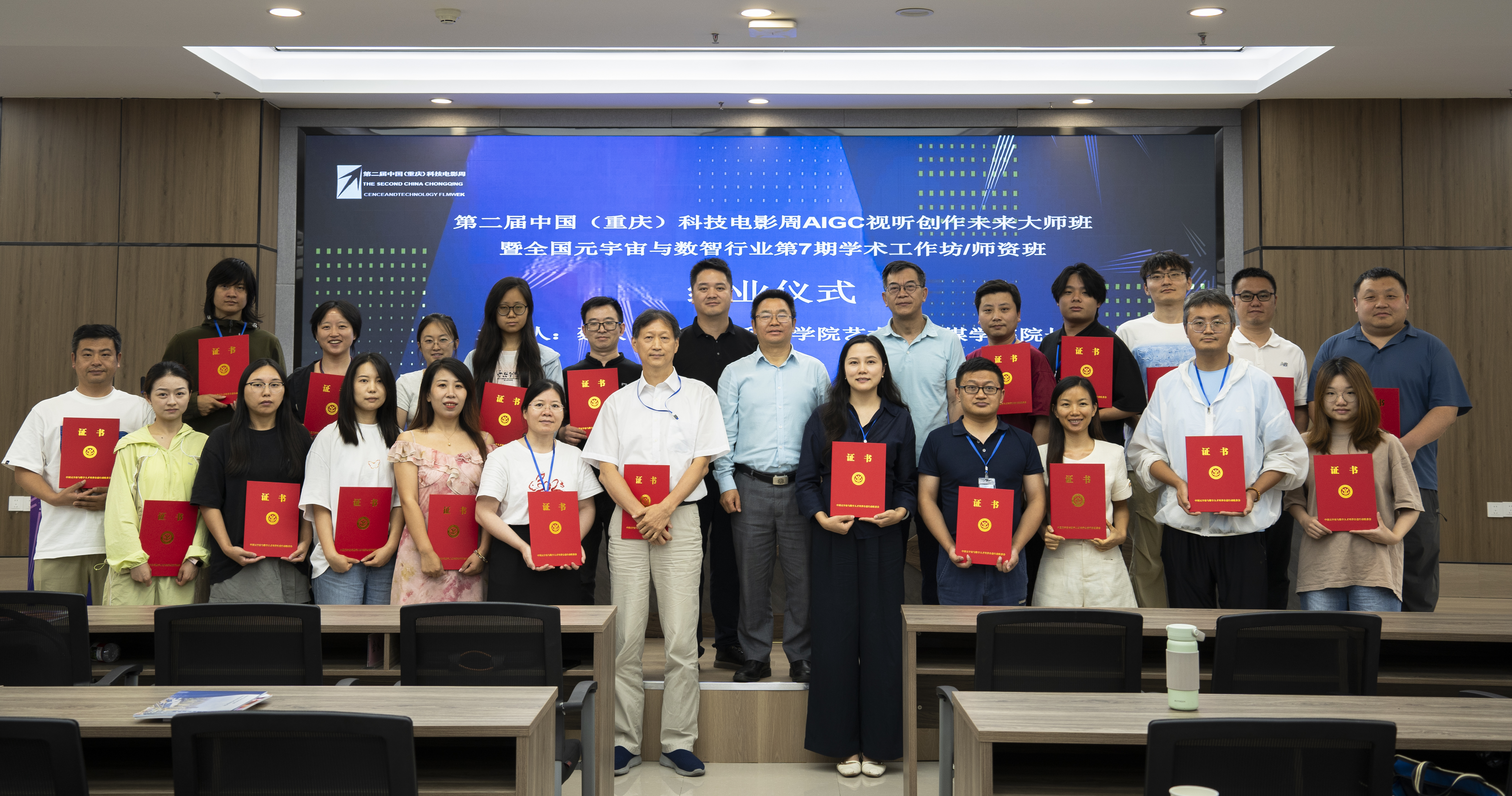 2025年7月3日-7日,2025上合组织国家电影节暨第二届中国(重庆)科技电影周在重庆永川隆重举办。作为本届电影周的重要学术活动之一,“第二届(重庆)科技电影周AIGC视听创作未来大师班”吸引了来自全国各地的高校教师、影视创作者、科技艺术研究者及行业专家齐聚一堂,共同探讨人工智能生成内容(AIGC)在影视创作与视听艺术中的前沿应用与发展趋势。艺术与传媒学院承办并积极组织青年教师参与此次培训,推动学院在人工智能技术与影视行业融合领域的教学创新与发展研究。上述活动由微影星火数字传媒产业学院支持。