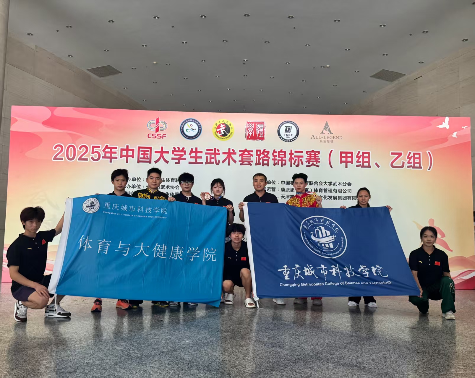 2025年中国大学生武术套路锦标赛(甲组、乙组)于7月25日至8月1日在“九河下梢”天津顺利举行。作为教育部直属、中国学生体育联合会主办的全国高校范围最高级别的武术赛事,共有来自全国各地31个省市自治区的240余只高校代表队,2000余名参赛人员(包括领队、教练和运动员)齐聚一堂、各展风采,共襄武术盛会。 与往届赛事不同,本次比赛由于取消了体育专业组(甲A)和非体育专业组(甲B)的组别划分,导致整体竞争空前激烈。城科武术队9名队员在体育与大健康学院院长邓文全领队,教练武喆彧、邹蓉、张鹏超的带领下,面对平均30~40人,甚至50余人一组的同场高强度竞争,历经七天的赛场鏖战,不懈努力、奋勇拼搏,展现出了城科学子的昂扬向上、锐意进取的精神风貌和稳中有升、日益精进的竞技水平,共取得1金、1银、4个第四、1个第六、1个第八的成绩,创下学校参加全国性武术套路赛事的最佳记录,也为重庆地区的高校团队争得了宝贵荣誉。 回溯本次全国赛征程,从前期规划到中期备赛再到后期竞赛,无论是教练还是队员们都是在面临极大挑战的情况下,克服了重重困难,最终绽放出了属于城科人的精彩。今年的全国赛竞赛规程直到7月初才正式公布,彼时学校已经放假,但是为了能够以最佳的竞技状态和技术水平参加比赛,老师和同学们毅然留校开展暑期赛前集训。高温40℃的天气无法阻挡他们日复一日、日均6小时积极训练的步伐,突降暴雨也不能浇灭他们对于冠军和荣誉的热情与渴望;即使膝盖旧伤复发、疼到难以坚持站立,两位武术队员依然只是选择休息几日、稍加扎针、按摩等应急处理便再返训练房......正是由于这份对于武术的热爱和坚持,才铸就了城科武术队钢铁般的意志和作风,也是他们用实际行动对于校训“厚德、博学、求是、创新”的完美诠释。 此次成绩的取得,离不开学校、体育与大健康学院、新活力体育产业学院以及领导们的大力支持,离不开老师们的无私奉献,更离不开同学们对于武术的赤诚之心、热爱之情。赛后,邓文全院长表示:本次全国大学生武术套路锦标赛取得的成绩不仅是学院践行体教融合政策、培养学生五育并举的重要成果,而且是学校深耕育人沃土、厚植竞技精神的完美体现。希望城科学子在未来的征程中,继续秉承顽强拼搏、坚持不懈的奋斗精神,发扬敢打敢拼、无惧挑战的坚毅品格,脚踏实地、追求卓越,争取更大的突破,为sjb世俱杯官方网站、体育与大健康学院再创辉煌!(传媒中心 易雪/编辑)